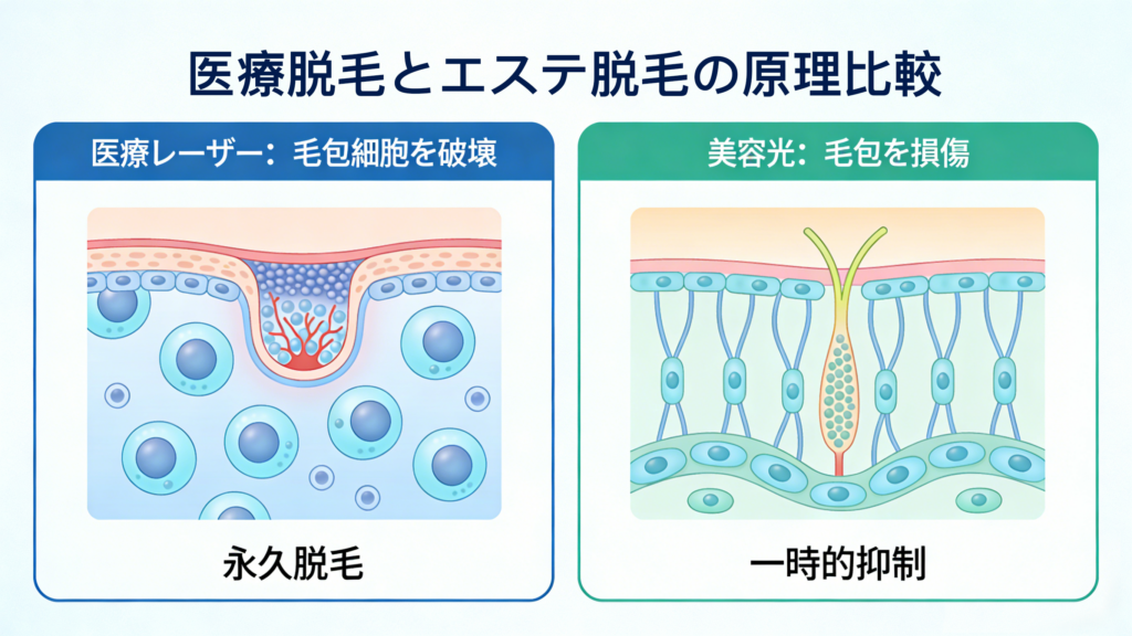 医療脱毛とエステ脱毛は、そもそも法律上の位置づけが全く異なります。この違いを理解することが、すべての比較の基本となります。